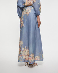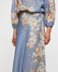 Skirt Cascadian Bias from Zimmermann. Midi-length linen skirt with a high waistband and a soft A-line silhouette. The skirt is made from 100% linen and features a placement print throughout the garment. It has a simple slip-on design and a short lined underskirt for extra comfort. Wear together with the matching blouse from Zimmermann for a complete look. Size and Fit - Fits true to size, choose your usual size - The model is 176 cm tall and is wearing size 1 Specification - Article number - ID: 176193-022 - Brand: Zimmermann - Color: Blue - Washing Instructions: Dry clean - Made of: 100% Linen