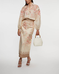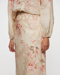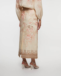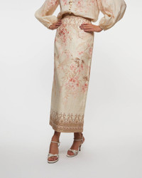 Skirt Illuminate Pencil Midi from Zinnermann.This skirt exudes both feminine elegance and a perfect balance of style and comfort. With its beautiful floral pattern and tailored fit, it enhances your silhouette and gives a sophisticated feel. Perfect for both everyday wear and special occasions, this midi skirt is a timeless and versatile choice for any wardrobe. Size and Fit - Fits true to size, choose your usual size - The model is 175 cm tall and is wearing size 1 Specification - Article number - ID: 175893-110 - Brand: Zimmermann - Color: Multicolor - Washing Instructions: Dry clean - Made of: Main: 100% linen, Lining: 100% cotton