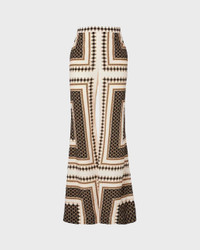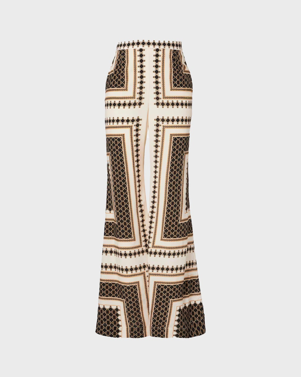 Flare Pants from Zimmermann. Stylish, patterned trousers in a relaxed fit with elegantly flared legs. The design combines comfort with a sophisticated silhouette, making them perfect for both everyday wear and more festive occasions. The pants feature practical side pockets and close with a discreet zip at the back for a smooth, seamless look. Pair them with the matching blouse from Zimmermann for a complete ensemble. Size and Fit - Fits true to size, choose your usual size - The model is 176 cm tall and is wearing size 1 Specification - Article number - ID: 176995-611 - Brand: Zimmermann - Color: Print - Washing Instructions: Dry clean - Made of: 55% viscose, 54% silk