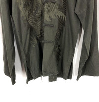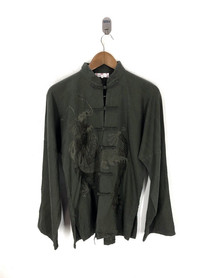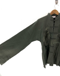 Step into timeless style with this vintage Chinese-style jacket from SIRUIYI. Crafted in a rich olive green fabric, this jacket features a stunning embroidered dragon motif on the front, symbolizing strength and good fortune. Designed with traditional frog button closures, a mandarin collar, and wide sleeves, it blends cultural heritage with bold fashion. Ideal for collectors, martial arts enthusiasts, or anyone wanting a standout layering piece. Features: Brand: SIRUIYI Color: Olive Green Material: Likely cotton or linen blend (tag not shown) Embroidery: Black dragon detailing Closure: Traditional frog buttons Collar: Mandarin Size: Appears Medium (tag shows “L” but measurements recommended) Condition: Good vintage condition with minor wear – see photos for details Tag Size :- L (All measurements were taken lying flat) Actual size Manual Measurement (approximately) : Armpit to armpit: 21 inches Length from top of shoulder: 28 inches Sleeve: 23 inches Condition: An item that has been used or worn previously. See Our listing for full details and description of any imperfections. Please don't expect it to be like new Kindly see all pictures Thank you so much for your visit PAYMENT And SHIPPING: ¦Accept "PAYPAL" Only ¦This item will be ship along with Tracking Number after received a completed payment. all item will be shipped within 2-3 days after receive clear payment. post via international registered/signed for with tracking number. -PLEASE MAKE SURE YOUR ADDRESS IS COMPLETE AND CORRECT. -KINDLY LEAVE YOUR PHONE NUMBER FOR REFERENCE. Etc: Don't Worry About Customs Tax or Fees. I usually Declare all Items as 'Gift' & Declare Value of Item Lower than Original Price. All Items are Sold "AS IS" so Please be Sure to Read The Entire Description and Look at All The Pictures. Any Question and More Details Please Don't Hesitate to Contact Me. ATTENTION : Please pay close attention to measurements provided. Do not rely on tag size as pre-worn items may have been altered, stretched or shrunk & vintage sizes do not directly translate the modern sizes.The best way to ensure a correct fit is to compare our measurements with the measurements of a similar item that you know fits you well.Please enlarge the photos for clearer image. no return and refund.