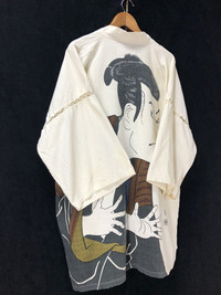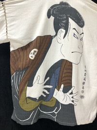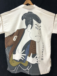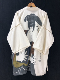D1 This stunning traditional Japanese haori jacket features a bold ukiyo-e style print of a kabuki actor on the back, reminiscent of works by renowned artist Sharaku. Made in Japan from 100% cotton, it boasts exquisite details such as Edo-period inspired craftsmanship and intricate hand-stitched side seams. The jacket is lightweight and breathable, perfect for layering in spring or summer. Key Features: Material: 100% cotton (綿), high-quality Japanese textile Design: Traditional haori cut with open front and side pockets Print: Ukiyo-e kabuki actor, likely inspired by Sharaku’s iconic portraits Origin: Made in Japan (日本製) Label: 江戸情緒 (Edo Jōcho) – “Edo Sentiment/Atmosphere” Care: Hand wash at 40°C; do not bleach, tumble dry, or iron over print Measurements (approx.): Length: ~75cm Width: ~60cm Sleeve length (from center back): ~55cm Tag Size :- (All measurements were taken lying flat) Actual size Manual Measurement (approximately) : Armpit to armpit: 29 inches Length from top of shoulder: 34 inches Condition: An item that has been used or worn previously. See Our listing for full details and description of any imperfections. Please don't expect it to be like new Kindly see all pictures Thank you so much for your visit PAYMENT And SHIPPING: ¦Accept "PAYPAL" Only ¦This item will be ship along with Tracking Number after received a completed payment. all item will be shipped within 2-3 days after receive clear payment. post via international registered/signed for with tracking number. -PLEASE MAKE SURE YOUR ADDRESS IS COMPLETE AND CORRECT. -KINDLY LEAVE YOUR PHONE NUMBER FOR REFERENCE. Etc: Don't Worry About Customs Tax or Fees. I usually Declare all Items as 'Gift' & Declare Value of Item Lower than Original Price. All Items are Sold "AS IS" so Please be Sure to Read The Entire Description and Look at All The Pictures. Any Question and More Details Please Don't Hesitate to Contact Me. ATTENTION : Please pay close attention to measurements provided. Do not rely on tag size as pre-worn items may have been altered, stretched or shrunk & vintage sizes do not directly translate the modern sizes.The best way to ensure a correct fit is to compare our measurements with the measurements of a similar item that you know fits you well.Please enlarge the photos for clearer image. no return and refund.