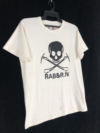 This off-white t-shirt from RAB&R.N x And Q&D collaboration combines rugged outdoor style with a touch of edge. Featuring a bold black skull and crossed ice axes graphic, it's a standout piece for streetwear enthusiasts and climbers alike. Made in Japan from 100% soft cotton, with detailed inner branding and care instructions. Material: 100% Cotton Color: Off-white with black print Tag Info: Joint expedition branding, made in Japan Fit: Size L, standard fit Tag Size : L Kindly see the actual measurements :- (All measurements were taken lying flat) Actual size Manual Measurement (approximately) : Armpit to Armpit - 18.5 inches Length From Back Collar to Bottom - 26 inches Shoulder to Shoulder - 17.5 inches Condition: An item that has been used or worn previously. See Our listing for full details and description of any imperfections. Please don't expect it to be like new Kindly see all pictures Thank you so much for your visit PAYMENT And SHIPPING: ¦Accept "PAYPAL" Only ¦This item will be ship along with Tracking Number after received a completed payment. all item will be shipped within 2-3 days after receive clear payment. post via international registered/signed for with tracking number. -PLEASE MAKE SURE YOUR ADDRESS IS COMPLETE AND CORRECT. -KINDLY LEAVE YOUR PHONE NUMBER FOR REFERENCE. Etc: Don't Worry About Customs Tax or Fees. I usually Declare all Items as 'Gift' & Declare Value of Item Lower than Original Price. All Items are Sold "AS IS" so Please be Sure to Read The Entire Description and Look at All The Pictures. Any Question and More Details Please Don't Hesitate to Contact Me. ATTENTION : Please pay close attention to measurements provided. Do not rely on tag size as pre-worn items may have been altered, stretched or shrunk & vintage sizes do not directly translate the modern sizes.The best way to ensure a correct fit is to compare our measurements with the measurements of a similar item that you know fits you well.Please enlarge the photos for clearer image
