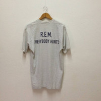 Authentic 1990s R.E.M. tour tee featuring front “Automatic for the People” design and “Everybody Hurts” back print. Printed on a classic Fruit of the Loom tag (Size L), made in the USA. A tribute to one of the most iconic alternative rock bands of the 90s. Highlights: Era: 1990s Band: R.E.M. Tag: Fruit of the Loom (Made in USA) Size: L (Adult) Material: 98% Cotton / 2% Other Fibers Condition: Excellent vintage condition, soft and worn-in size L (check measurements below) Measurements: Width (armpit to armpit): 22.5" Length (shoulder to end of garment): 29.5" Condition: An item that has been used or worn previously. See Our listing for full details and description of any imperfections. Please don't expect it to be like new Kindly see all pictures Thank you so much for your visit PAYMENT And SHIPPING: ¦Accept "PAYPAL" Only ¦This item will be ship along with Tracking Number after received a completed payment. all item will be shipped within 2-3 days after receive clear payment. post via international registered/signed for with tracking number. DHL EXPERSS After 3 days You can trace the parcel via Post Expected Shipping period takes within 5-7 days to arrived to its destination around the world. Please drop your contact no. after purchasing the item(s). This is important for the shipping purpose. -PLEASE MAKE SURE YOUR ADDRESS IS COMPLETE AND CORRECT. -KINDLY LEAVE YOUR PHONE NUMBER FOR REFERENCE. Etc: Don't Worry About Customs Tax or Fees. I usually Declare all Items as 'Gift' & Declare Value of Item Lower than Original Price. All Items are Sold "AS IS" so Please be Sure to Read The Entire Description and Look at All The Pictures. Any Question and More Details Please Don't Hesitate to Contact Me. ATTENTION : Please pay close attention to measurements provided. Do not rely on tag size as pre-worn items may have been altered, stretched or shrunk & vintage sizes do not directly translate the modern sizes.The best way to ensure a correct fit is to compare our measurements with the measurements of a similar item that you know fits you well.Please enlarge the photos for clearer image