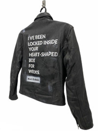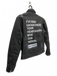 28 Step into timeless rock nostalgia with this vintage NUVISION leather biker jacket, customized with a bold, hand-painted lyric on the back from Nirvana’s iconic track “Heart-Shaped Box”: "I'VE BEEN LOCKED INSIDE YOUR HEART-SHAPED BOX FOR WEEKS." – Kurt Cobain This piece features: Brand: NUVISION – "Best Collection Leather Garments" Size: Tagged "L" (see photo) Material: 100% genuine leather Front details: Classic asymmetrical zip with epaulets, multiple zipper pockets, waist belt Back customization: White stenciled lyric with Kurt Cobain’s name label Interior detail: Quilted lining with a vintage “FREAKS PASS – Access All Area” patch sewn inside Condition: Vintage wear with light distressing and paint marks for added grunge authenticity This is not just a jacket—it’s a wearable tribute to 90s rock culture, perfect for collectors, Nirvana fans, or style rebels. Tag Size : F Kindly see the actual measurements :- (All measurements were taken lying flat) Actual size Manual Measurement (approximately) : Armpit to Armpit - 18.5 inches Length From Back Collar to Bottom - 22 inches Shoulder to Shoulder - 17 inches Sleeve Length - 22 inches Condition: An item that has been used or worn previously. See Our listing for full details and description of any imperfections. Please don't expect it to be like new Kindly see all pictures Thank you so much for your visit PAYMENT And SHIPPING: ¦Accept "PAYPAL" Only ¦This item will be ship along with Tracking Number after received a completed payment. all item will be shipped within 2-3 days after receive clear payment. post via international registered/signed for with tracking number. -PLEASE MAKE SURE YOUR ADDRESS IS COMPLETE AND CORRECT. -KINDLY LEAVE YOUR PHONE NUMBER FOR REFERENCE. Etc: Don't Worry About Customs Tax or Fees. I usually Declare all Items as 'Gift' & Declare Value of Item Lower than Original Price. All Items are Sold "AS IS" so Please be Sure to Read The Entire Description and Look at All The Pictures. Any Question and More Details Please Don't Hesitate to Contact Me. ATTENTION : Please pay close attention to measurements provided. Do not rely on tag size as pre-worn items may have been altered, stretched or shrunk & vintage sizes do not directly translate the modern sizes.The best way to ensure a correct fit is to compare our measurements with the measurements of a similar item that you know fits you well.Please enlarge the photos for clearer image