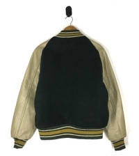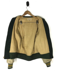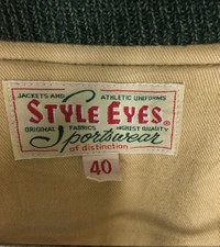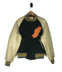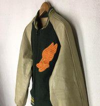 C6 A standout piece from STYLE EYES by Toyo Enterprise, this vintage varsity jacket features a classic two-tone design with a black wool body and cream leather sleeves. The chest sports a retro orange “Running Club 63” winged shoe patch. Ribbed striped cuffs and hem offer an authentic athletic look. Made in Japan with premium materials — 80% wool, 20% acrylic body; 100% cotton lining; genuine cowhide leather sleeves. Size: 40 (fits like a US Medium-Large) Condition: Very good, with minor signs of wear typical of vintage leather. Care: Specialist leather cleaning recommended. Tag Size :- 40 (All measurements were taken lying flat) Actual size Manual Measurement (approximately) : Armpit to armpit: 22 inches Length from top of shoulder: 26 inches Condition: An item that has been used or worn previously. See Our listing for full details and description of any imperfections. Please don't expect it to be like new Kindly see all pictures Thank you so much for your visit PAYMENT And SHIPPING: ¦Accept "PAYPAL" Only ¦This item will be ship along with Tracking Number after received a completed payment. all item will be shipped within 2-3 days after receive clear payment. post via international registered/signed for with tracking number. -PLEASE MAKE SURE YOUR ADDRESS IS COMPLETE AND CORRECT. -KINDLY LEAVE YOUR PHONE NUMBER FOR REFERENCE. Etc: Don't Worry About Customs Tax or Fees. I usually Declare all Items as 'Gift' & Declare Value of Item Lower than Original Price. All Items are Sold "AS IS" so Please be Sure to Read The Entire Description and Look at All The Pictures. Any Question and More Details Please Don't Hesitate to Contact Me. ATTENTION : Please pay close attention to measurements provided. Do not rely on tag size as pre-worn items may have been altered, stretched or shrunk & vintage sizes do not directly translate the modern sizes.The best way to ensure a correct fit is to compare our measurements with the measurements of a similar item that you know fits you well.Please enlarge the photos for clearer image. no return and refund.