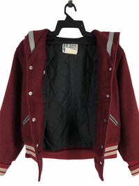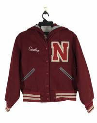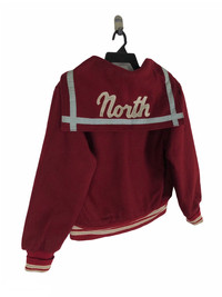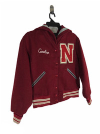 C10 Step back in time with this incredible 1950s vintage varsity cheerleader jacket by Trophy Jackets, a division of Gosten’s Meca Sportswear Inc., made in St. Paul, Minnesota. This rare piece of Americana features: Rich maroon wool body with cream and gray accents Large varsity "N" patch on the chest Custom embroidered “Caroline” on front and “North” across the sailor-style back yoke Iconic 50s cropped fit with knit waistband and cuffs Heavyweight construction with full lining Labeled “Dry Cleanable Leather” – professional care recommended Made in the USA Tag Size : Kindly see the actual measurements :- (All measurements were taken lying flat) Actual size Manual Measurement (approximately) : Armpit to Armpit - 20.5 inches Length From Back Collar to Bottom - 22.5 inches Shoulder to Shoulder - 17.5 inches Sleeve Length - 23 inches Condition: An item that has been used or worn previously. See Our listing for full details and description of any imperfections. Please don't expect it to be like new Kindly see all pictures Thank you so much for your visit PAYMENT And SHIPPING: ¦Accept "PAYPAL" Only ¦This item will be ship along with Tracking Number after received a completed payment. all item will be shipped within 2-3 days after receive clear payment. post via international registered/signed for with tracking number. -PLEASE MAKE SURE YOUR ADDRESS IS COMPLETE AND CORRECT. -KINDLY LEAVE YOUR PHONE NUMBER FOR REFERENCE. Etc: Don't Worry About Customs Tax or Fees. I usually Declare all Items as 'Gift' & Declare Value of Item Lower than Original Price. All Items are Sold "AS IS" so Please be Sure to Read The Entire Description and Look at All The Pictures. Any Question and More Details Please Don't Hesitate to Contact Me. ATTENTION : Please pay close attention to measurements provided. Do not rely on tag size as pre-worn items may have been altered, stretched or shrunk & vintage sizes do not directly translate the modern sizes.The best way to ensure a correct fit is to compare our measurements with the measurements of a similar item that you know fits you well.Please enlarge the photos for clearer image