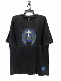 Own a piece of wrestling history with this authentic vintage 2003 WWE Rey Mysterio t-shirt. Featuring the legendary luchador’s iconic mask on the front and “Mysterio” in bold gothic lettering on the back, this shirt was produced by Trinity Products, Inc. for World Wrestling Entertainment (WWE). Size: XL Color: Black Tag: WWE Authentic – Trinity Products, Inc. Material: 100% Cotton Made in: San Marcos, CA Year: 2003 Condition: Gently worn with minor signs of age. No holes or major flaws. Print still bold and vivid. Perfect for collectors, fans of classic WWE, or vintage streetwear enthusiasts. Tag Size : XL Kindly see the actual measurements :- (All measurements were taken lying flat) Actual size Manual Measurement (approximately) : Armpit to Armpit - 22.5 inches Length From Back Collar to Bottom - 31 inches Shoulder to Shoulder - 23.5 inches Condition: An item that has been used or worn previously. See Our listing for full details and description of any imperfections. Please don't expect it to be like new Kindly see all pictures Thank you so much for your visit PAYMENT And SHIPPING: ¦Accept "PAYPAL" Only ¦This item will be ship along with Tracking Number after received a completed payment. all item will be shipped within 2-3 days after receive clear payment. post via international registered/signed for with tracking number. -PLEASE MAKE SURE YOUR ADDRESS IS COMPLETE AND CORRECT. -KINDLY LEAVE YOUR PHONE NUMBER FOR REFERENCE. Etc: Don't Worry About Customs Tax or Fees. I usually Declare all Items as 'Gift' & Declare Value of Item Lower than Original Price. All Items are Sold "AS IS" so Please be Sure to Read The Entire Description and Look at All The Pictures. Any Question and More Details Please Don't Hesitate to Contact Me. ATTENTION : Please pay close attention to measurements provided. Do not rely on tag size as pre-worn items may have been altered, stretched or shrunk & vintage sizes do not directly translate the modern sizes.The best way to ensure a correct fit is to compare our measurements with the measurements of a similar item that you know fits you well.Please enlarge the photos for clearer image