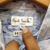 Rar vintage PAUL Smith London All Over Print Art Designer saiz L size L (check measurements below) Measurements: Width (armpit to armpit): 26" Length (shoulder to end of garment): 30" Condition: An item that has been used or worn previously. See Our listing for full details and description of any imperfections. Please don't expect it to be like new Kindly see all pictures Thank you so much for your visit PAYMENT And SHIPPING: ¦Accept "PAYPAL" Only ¦This item will be ship along with Tracking Number after received a completed payment. all item will be shipped within 2-3 days after receive clear payment. post via international registered/signed for with tracking number. Please drop your contact no. after purchasing the item(s). This is important for the shipping purpose. -PLEASE MAKE SURE YOUR ADDRESS IS COMPLETE AND CORRECT. -KINDLY LEAVE YOUR PHONE NUMBER FOR REFERENCE. Etc: Don't Worry About Customs Tax or Fees. I usually Declare all Items as 'Gift' & Declare Value of Item Lower than Original Price. All Items are Sold "AS IS" so Please be Sure to Read The Entire Description and Look at All The Pictures. Any Question and More Details Please Don't Hesitate to Contact Me. ATTENTION : Please pay close attention to measurements provided. Do not rely on tag size as pre-worn items may have been altered, stretched or shrunk & vintage sizes do not directly translate the modern sizes.The best way to ensure a correct fit is to compare our measurements with the measurements of a similar item that you know fits you well.Please enlarge the photos for clearer image