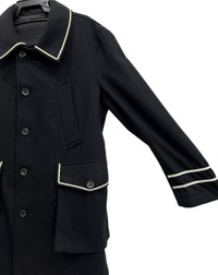 51 Garment Details • Model Number: MO-C10-113 (as seen on the Japanese label) • Materials: • Outer: 90% Wool, 5% Nylon, 5% Polyester • Lining: 100% Cupro • Care Instructions: Dry clean only; do not wash or bleach. Warm iron and tumble dry are listed, but the symbols contradict machine drying. Always better to follow the symbols—dry clean only is the safest. ⸻ Style Observations • The coat has a military-inspired or structured overcoat design, with: • Wide lapels • Decorative piping (white trim along the collar, cuffs, and pockets) • Buttoned front and multiple flap pockets • This is a signature look in Y’s outerwear: functional but with a twist, often influenced by uniform aesthetics with a feminine reinterpretation. Tag Size :- (All measurements were taken lying flat) Actual size Manual Measurement (approximately) : Armpit to armpit: 21 inches Length from top of shoulder: 36 inches shoulder to shoulder: 19.5 inches Sleeves length: 26 inches Condition: An item that has been used or worn previously. See Our listing for full details and description of any imperfections. Please don't expect it to be like new Kindly see all pictures Thank you so much for your visit PAYMENT And SHIPPING: ¦Accept "PAYPAL" Only ¦This item will be ship along with Tracking Number after received a completed payment. all item will be shipped within 2-3 days after receive clear payment. post via international registered/signed for with tracking number. -PLEASE MAKE SURE YOUR ADDRESS IS COMPLETE AND CORRECT. -KINDLY LEAVE YOUR PHONE NUMBER FOR REFERENCE. Etc: Don't Worry About Customs Tax or Fees. I usually Declare all Items as 'Gift' & Declare Value of Item Lower than Original Price. All Items are Sold "AS IS" so Please be Sure to Read The Entire Description and Look at All The Pictures. Any Question and More Details Please Don't Hesitate to Contact Me. ATTENTION : Please pay close attention to measurements provided. Do not rely on tag size as pre-worn items may have been altered, stretched or shrunk & vintage sizes do not directly translate the modern sizes.The best way to ensure a correct fit is to compare our measurements with the measurements of a similar item that you know fits you well.Please enlarge the photos for clearer image. no return and refund.