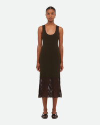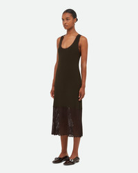 A knitted dress crafted in cotton knit crochet, presented in dark brown.
