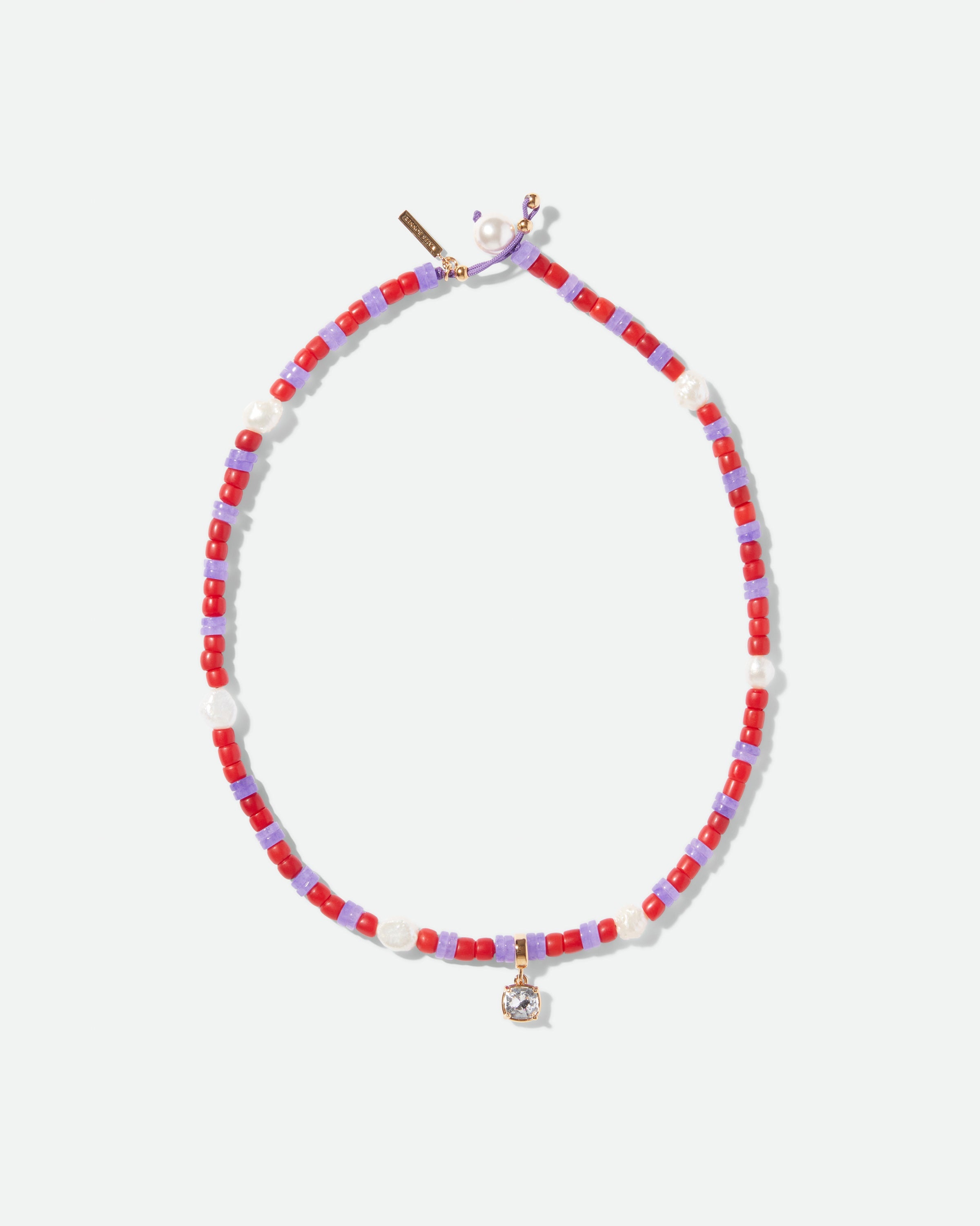 A seasonal iteration of the signature Dream Necklace, crafted from recycled glass beads made by artisans in Ghana and Kenya along with freshwater pearls and a Swarovski crystal pendant. - Gold-Plated Brass - Artisanal Beads - Made in Italy