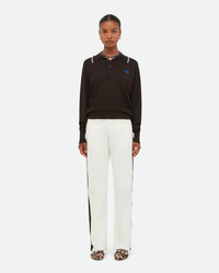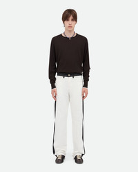 A mens denim trouser crafted in denim twill & satin, presented in ivory and black. Composition:FABRIC1: 100%CO FABRIC 2: 100% POLYESTER LINING:100%CO TRIM: 100% COW LEATHER