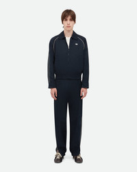 A unisex track jacket crafted in taslan gaberdine, presented in navy.