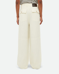A unisex trouser crafted in linen viscose slub, presented in ivory.