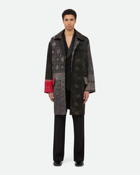The Prelude Coat is crafted from hand-sewn sections of vintage Kantha quilt fabric made in India. Each coat is a unique offering, with variations in pattern and colour owing to the artisanal nature of the fabric. Gilbert is 1.89 / 6'2.5 and wears size IT 48 - Leather Collar - Vintage Fabric - 100% Cotton