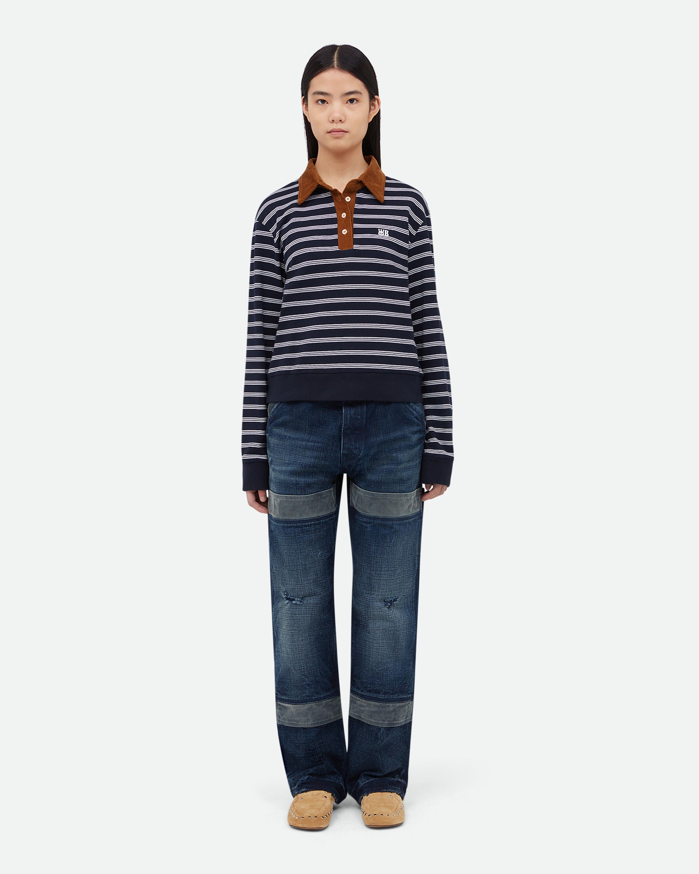 The Reflect Polo Striped Japanese pique polo with a contrast corduroy collar. - Regular Fit - Made in Portugal - 95% Cotton, 4% Polyester, 1% Elastane