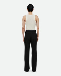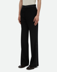 The Rise Tailored Trousers Black Grain de Poudre Wool tuxedo trousers with a brown satin side stripe, cut for a slight flare towards the hem. - Flared Hem - Made in Italy - 100% Wool