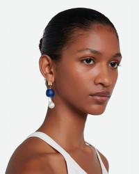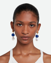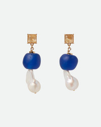 The Wish Earring is crafted from recycled glass beads made by artisans in Ghana, freshwater pearls and a rutilated quartz crystal. - Gold-Plated Brass - Recycled Glass Beads - Made in Italy