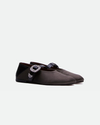 A crystal buckle shines on the Glide Slippers, made in Italy from satin and a foldable leather heel for versatile styling. - Rubber Sole - Leather Heel - Made in Italy