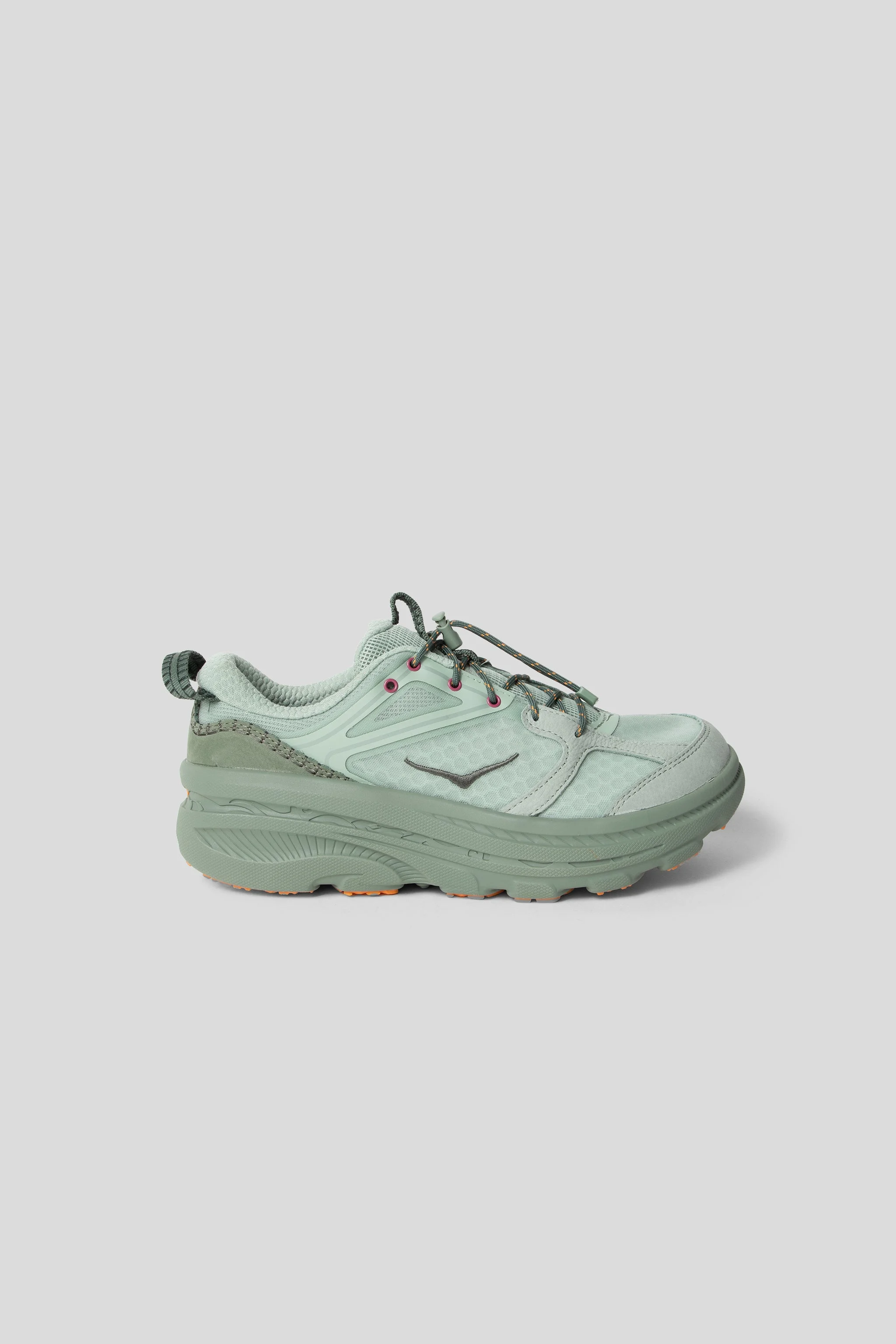 HOKA All Gender Bondi B3 - Aloe Vera/Succulent Unleash your potential with the Bondi B3LS, where performance meets comfort and bold design. This standout shoe is crafted with a max-cushioned midsole for ultimate support, featuring a retro hexagonal mesh underlay upper and luxurious Nubuck overlays. Perfect for those who dare to go big and do it all. Features - Mesh and knit upper with TPU film overlays - Suede vamp, toe cap, and heel overlays - Premium two-toned reflective round laces with toggle and lace lock - Embroidered logo - Heel webbing
