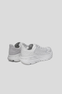 Hoka One One All Gender Clifton LS - White/Nimbus Cloud You may remember the Clifton L from last year's drop – a lifestyle-focused suede version of HOKA's all-time favourite sneaker. The Clifton LS is the logical evolution for those that either missed the boat or simply can't get enough of this upscale take on the classic comfort sneaker, adding pebbled leather, suede details, and round, streamlined races for a more high street-inspired look. The bones of the beloved sneaker are still there though, including a Durabrasion rubber outsole for traction on the vast majority of surfaces. Features - Padded performance collar - Creel jacquard upper - Pebbled leather and textured suede overlays - Compression molded EVA midsole - Durabrasion rubber outsole - Made in Vietnam