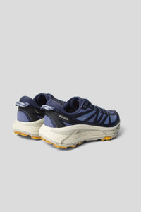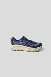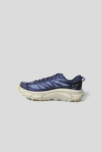 HOKA All Gender Mafate Speed 2 - Varsity Navy/Farro The Mafate Speed 2 is engineered for trail excellence with its lightweight no-sew SpeedFrame construction and an external monomesh debris screen for added protection. It features a lightweight external TPU heel counter and Early Stage MetaRocker™ geometry for smooth transitions. The cushioned CMEVA top midsole and Vibram® Megagrip outsole provide superior traction and comfort, while the 4mm heel-to-toe offset and strategic high-abrasion rubber zones ensure durability on rugged terrain. Features - Lightweight no-sew SpeedFrame construction - External monomesh debris screen - Lightweight external TPU heel counter - Early stage MetaRocker™ geometry - Lightweight cushioned CMEVA top midsole - Vibram® Megagrip outsole - 4mm heel to toe offset - Strategic high-abrasion rubber zones