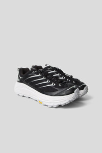 HOKA All Gender Mafate Three2 - Black/Cosmic Grey The Mafate Three2 is built for trail performance with a quick lace system for easy adjustments and an internal gusset for a secure fit. The mesh upper with hot melt overlays ensures breathability and durability, while the compression-molded EVA midsole offers superior cushioning. Equipped with a Vibram® Megagrip outsole, this shoe delivers exceptional traction on varied terrain. Features - Quick lace system - Internal gusset - Mesh upper with hot melt overlays - Compression molded EVA midsole - Vibram® Megagrip outsole