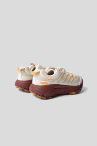 HOKA All Gender Mafate Three2 - Vanilla/Varsity Burgundy The Mafate Three2 is built for trail performance with a quick lace system for easy adjustments and an internal gusset for a secure fit. The mesh upper with hot melt overlays ensures breathability and durability, while the compression-molded EVA midsole offers superior cushioning. Equipped with a Vibram® Megagrip outsole, this shoe delivers exceptional traction on varied terrain. Features - Quick lace system - Internal gusset - Mesh upper with hot melt overlays - Compression molded EVA midsole - Vibram® Megagrip outsole