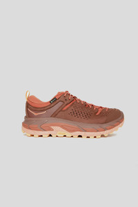 Hoka One One All Gender TOR ULTRA LO - Spice/Hot Sauce The Tor Ultra Hi sold out practically the second it hit our shelves for the first time, and we wouldn't be at all surprised if this lowered version was greeted with the same response. What the Tor Ultra Lo gives up in ankle protection, it gains in versatility as the fashion-forward design really shines in shoe format. A waterproof GORE-TEX® upper is a nice-to-have not just for trails, and HOKA's signature extended-heel geometry is underfoot to provide a smooth ride and plenty of stability. Features - GORE-TEX bootie construction - Vibram® Megagrip outsole - Rubber toe cap - Non-wicking mesh - Sierra nubuck leather upper - Made in Vietnam