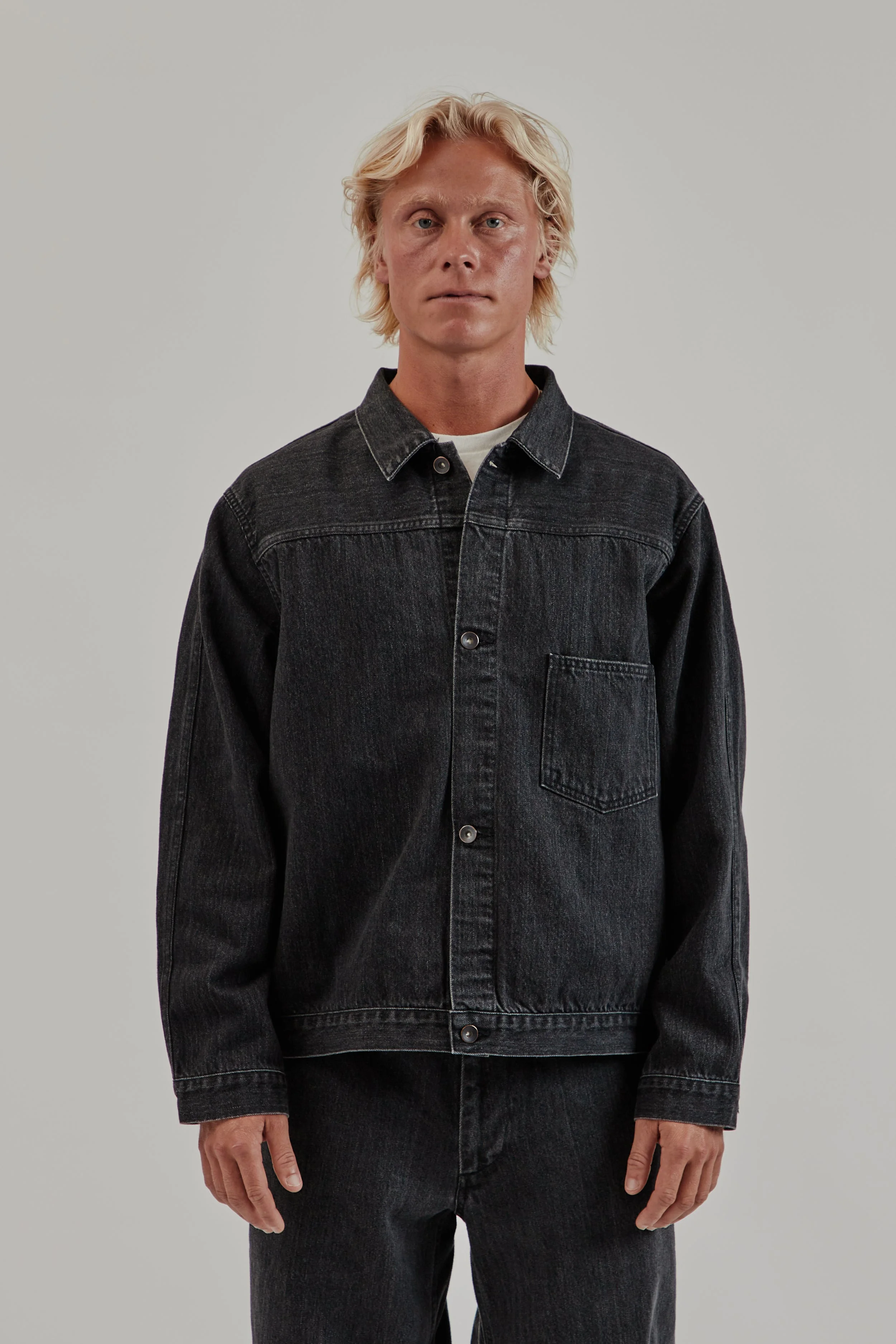 Nanamica Short Denim Jacket - Gray The Nanamica Short Denim Jacket offers a perfect blend of vintage-inspired design and modern functionality. Crafted in Japan from a lightweight hybrid denim (70% cotton, 30% polyester) that uses a unique yarn of recycled polyester wrapped in cotton, this jacket is both durable and quick-drying, and allows for natural aging over time. Inspired by 1940s workwear, it features a relaxed, cropped fit, split yoke sleeves for enhanced mobility, and a convenient zippered inner pocket. Features - Crafted from lightweight 70% cotton, 30% polyester hybrid denim - Short, relaxed silhouette with a cropped length - Features a spread collar, button closure, and a chest patch pocket - Split yoke sleeves for enhanced arm mobility - Zippered inner pocket for secure storage - Made in Japan