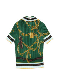 green chain print pleated short sleeves collared striped trim - Colour: Blue and green - Country Of Manufacture: China - MPN: AC0786AB8