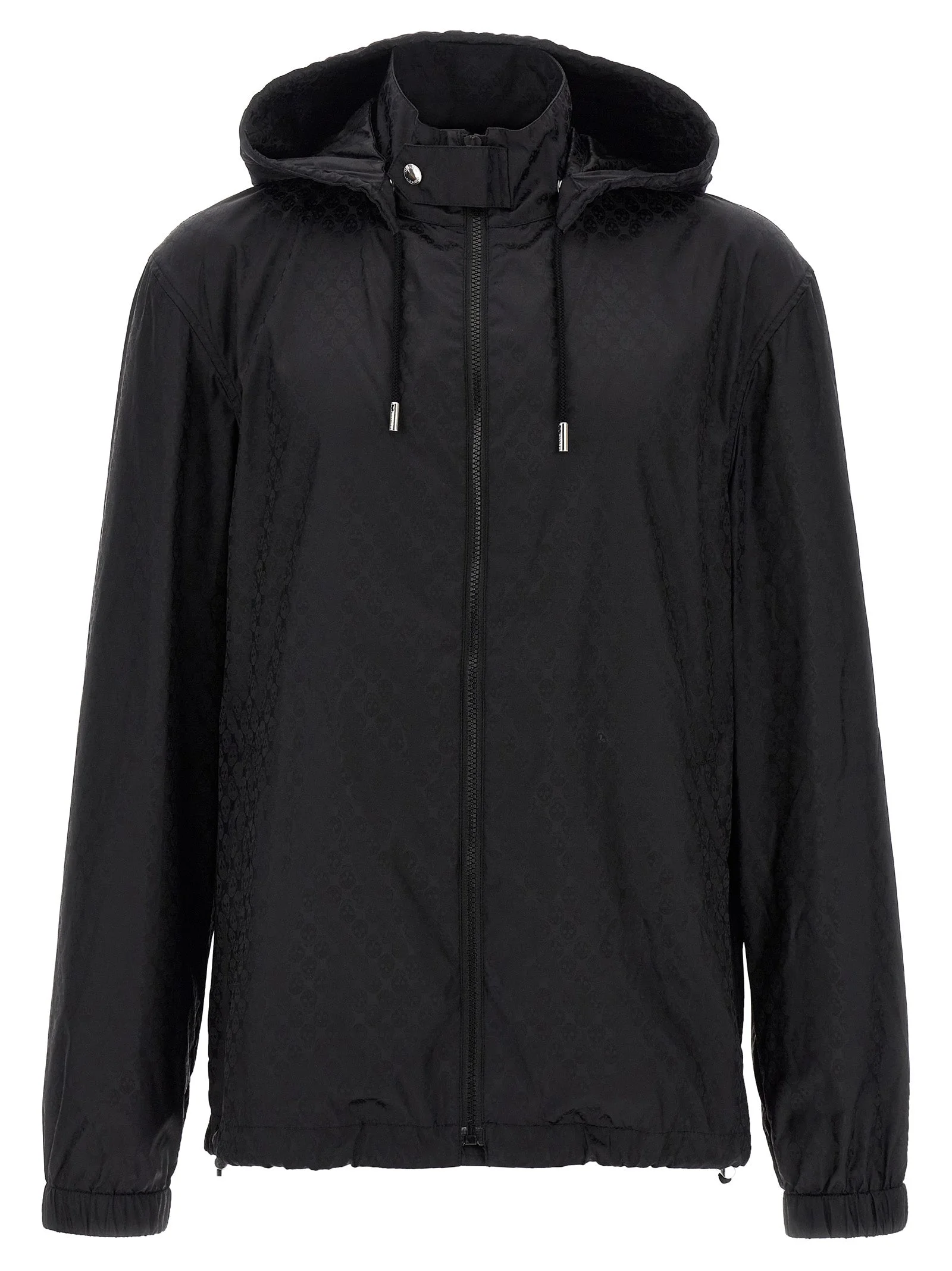 Nylon anorak with all-over tone-on-tone jacquard 'Skull' pattern, adjustable and removable hood, high neck with snap button closure, front zip closure, pockets, long sleeves with elastic cuffs and dropped shoulders, drawstring on the hem. - Colour: Black - Composition: 100% polyamide - Country Of Manufacture: Italy - Dimension: Comfort fit - MPN: 838592QRACA1000