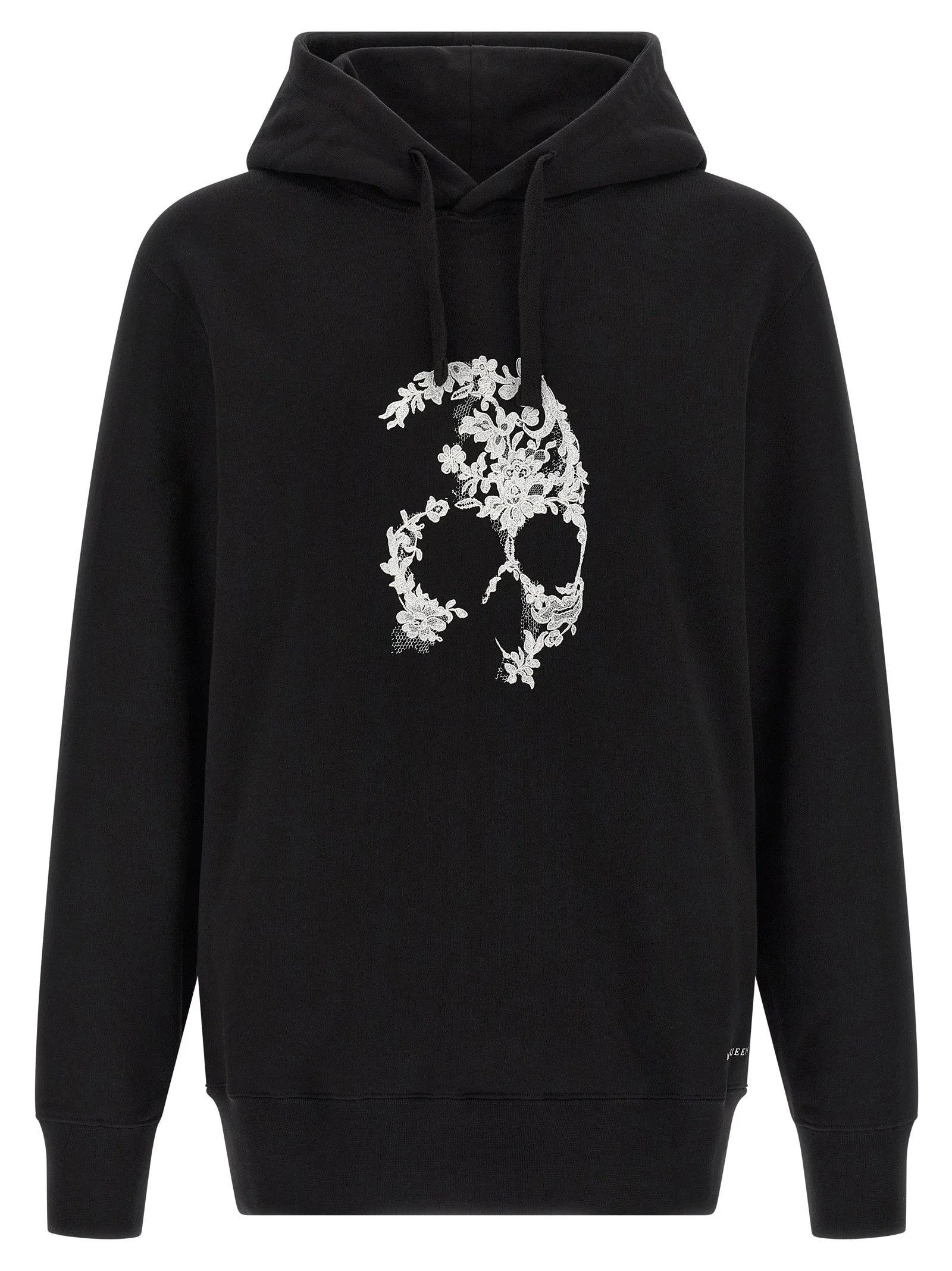Brushed cotton hoodie with digital lace 'Skull' print and front logo, long cuffed sleeves and dropped shoulders. - Colour: White/Black - Composition: 100% cotton - Country Of Manufacture: Italy - Dimension: true to size fit - MPN: 862290QTAEL0520
