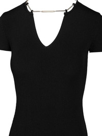Ss V-Neck Dress With Nameplate Chain Dresses Black