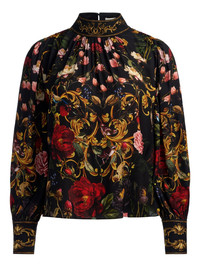 black floral print mock neck gathered front long sleeves cuff detailing - Colour: Blacks and greys - Composition: Synthetic->viscose100.0 % - Country Of Manufacture: Hongkong - MPN: CC510P85009O954