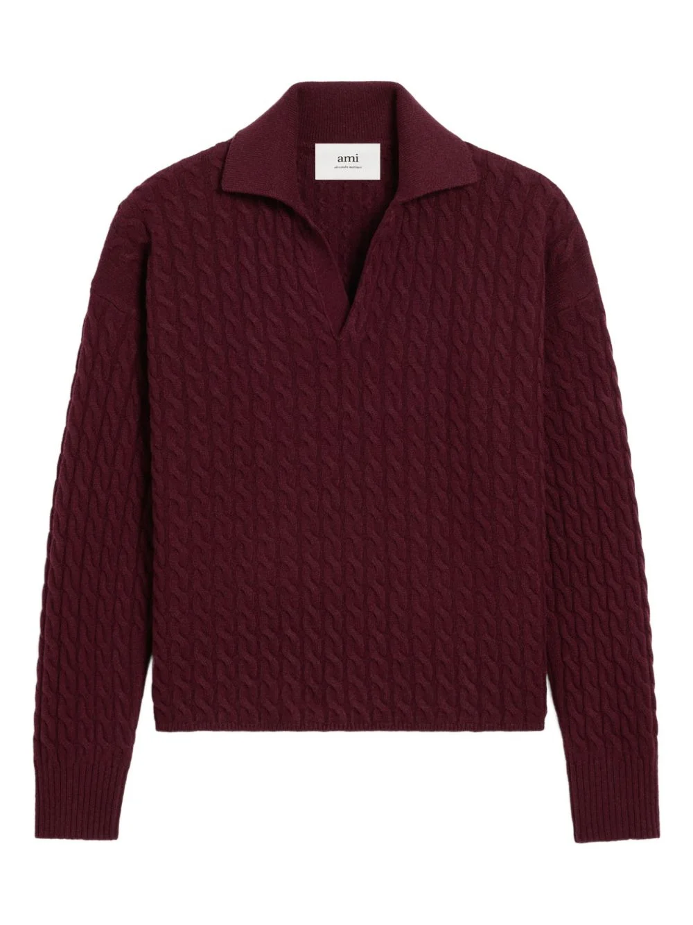 burgundy cable knit long sleeves polo collar relaxed fit - Colour: Cerise - Composition: 90%wo 10%cashmere - Country Of Manufacture: Italy - MPN: H25UPL403KN0104692H25
