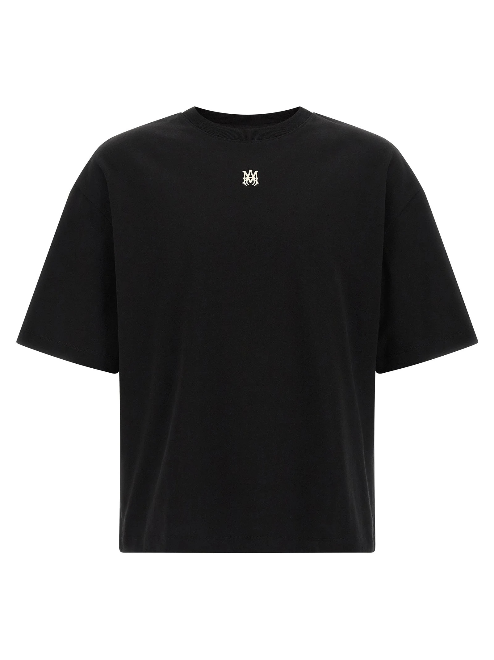 'MA Drop' cotton T-shirt with front contrast logo embroidery, crew neck, short sleeves with dropped shoulders, side slits. - Colour: Black - Composition: 100% cotton - Country Of Manufacture: Portugal - Dimension: oversized fit - MPN: AWTOJR1011001