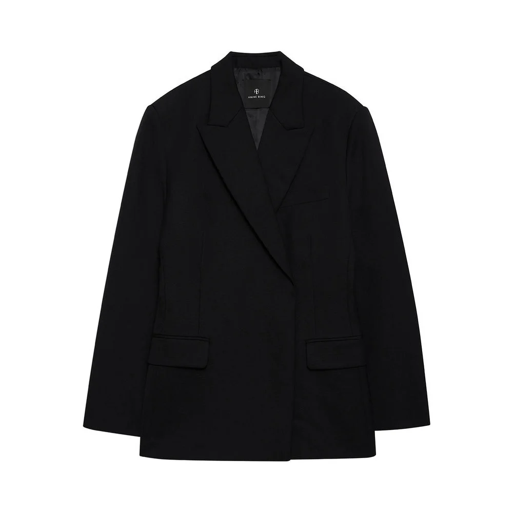 black peak lapels front flap pockets long sleeves - Colour: Black - Composition: Polyester: 52.0%, Wool: 48.0% - Country Of Manufacture: China - MPN: A0112057BLK1
