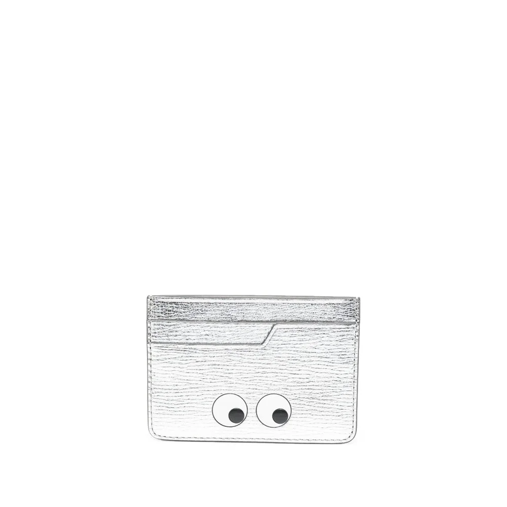 Silver goatskin Eyes cardholder from Anya Hindmarch featuring an internal logo stamp and multiple card slots. - Colour: Silver - Composition: Outer Composition Goat Skin: 100.0% - Country Of Manufacture: Italy - Dimensions: width: 7.0 centimetres, length: 10.0 centimetres - MPN: 925839AW160266SILVE
