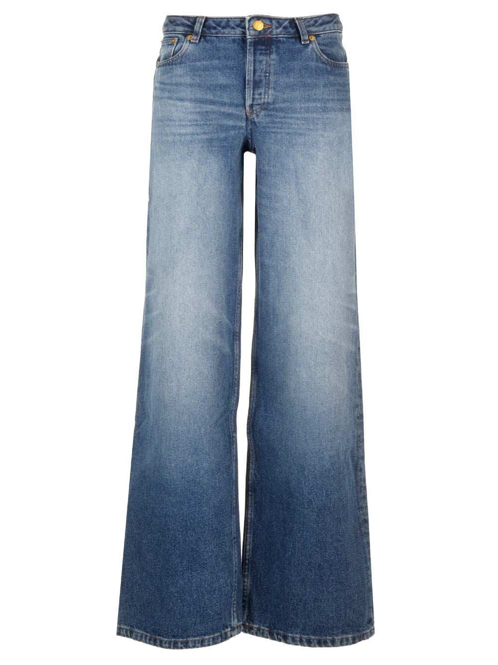 "Elisabeth" jeans in stonewashed indigo denim from A.P.C., wide leg, high waist, button fastening and hidden zip. - Colour: Blue - Composition: 100% COTON - Country Of Manufacture: EG - MPN: COGZUF09181IAL