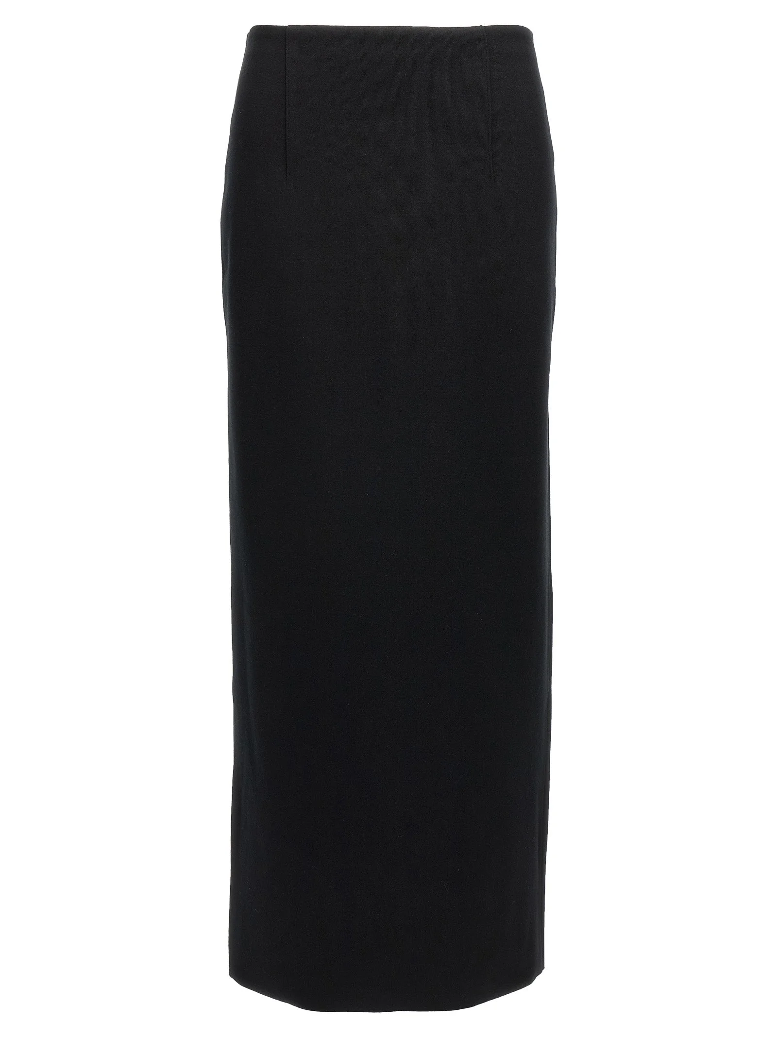 Long double-sided knitted skirt in yarn dyed with Supima cotton blend and silk with brushed finish and an elasticized yarn back, split and back zip closure. - Colour: Black - Composition: 46% cotton 27% viscose 15% other 12% silk - Country Of Manufacture: Japan - Dimension: Slim fit - MPN: A25SS02WFBLACK