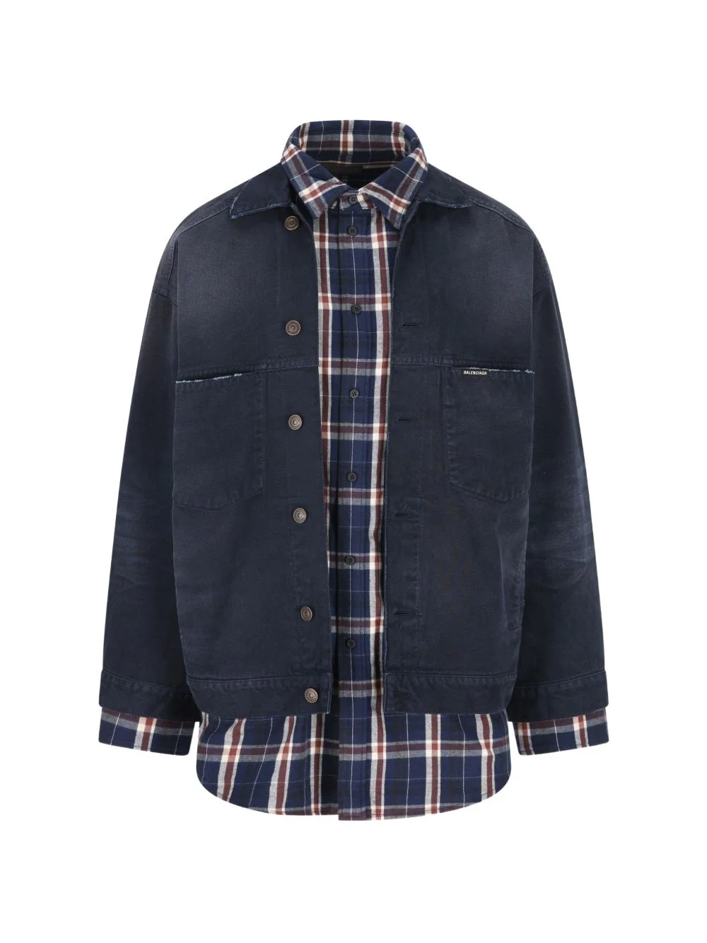 navy blue check pattern button fastening front patch pocket buttoned cuffs collar - Colour: Blue and green - Composition: Cotton 100% - Country Of Manufacture: Italy - MPN: 857174TTW648074