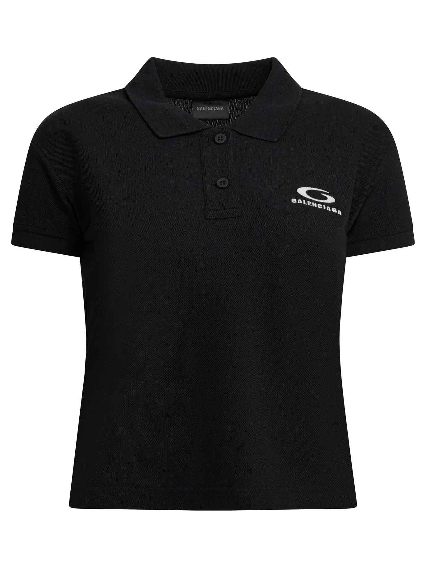 Balenciaga's "Loop Sports Icon" polo shirt features a compact construction in cotton fabric. The silhouette is defined by a boxy construction and a straight line at the shoulders. The design features buttons on the front and short sleeves. The applied Loop Sports Icon logo adds a graphic detail. Seams are visible at the points where the sleeve and torso connect, while the collar retains a stiff, minimalist shape. - Loop Sports Icon logo on the front - Short sleeves - Polo shirt with buttons - Classic collar - Boxy fit - Colour: Black - Composition: 100% cotton - Country Of Manufacture: Italy - Extra Description: LogoBoxy fit;Short sleeves - MPN: 858098TTVT81070