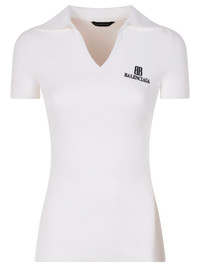 Ribbed V-Neck Short-Sleeved Polo Shirt - Colour: White - Composition: Viscose, 84% Viscose, 16% Polyester - Country Of Manufacture: Italy - MPN: 835501T52319040WHITEBLACK