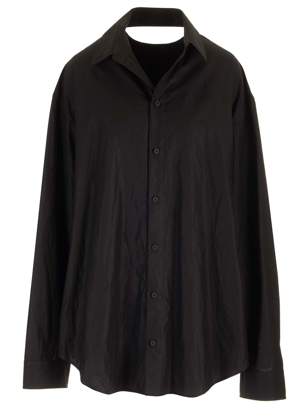 "Suspended" shirt-effect dress in black cotton poplin by Balenciaga, with trompe l'oeil effect construction, zip on the back and open back. - Colour: Black - Composition: T COTTON 100% BU PINCTADA MARGAR O:PF 100% - Country Of Manufacture: IT - MPN: 809049TNM601000