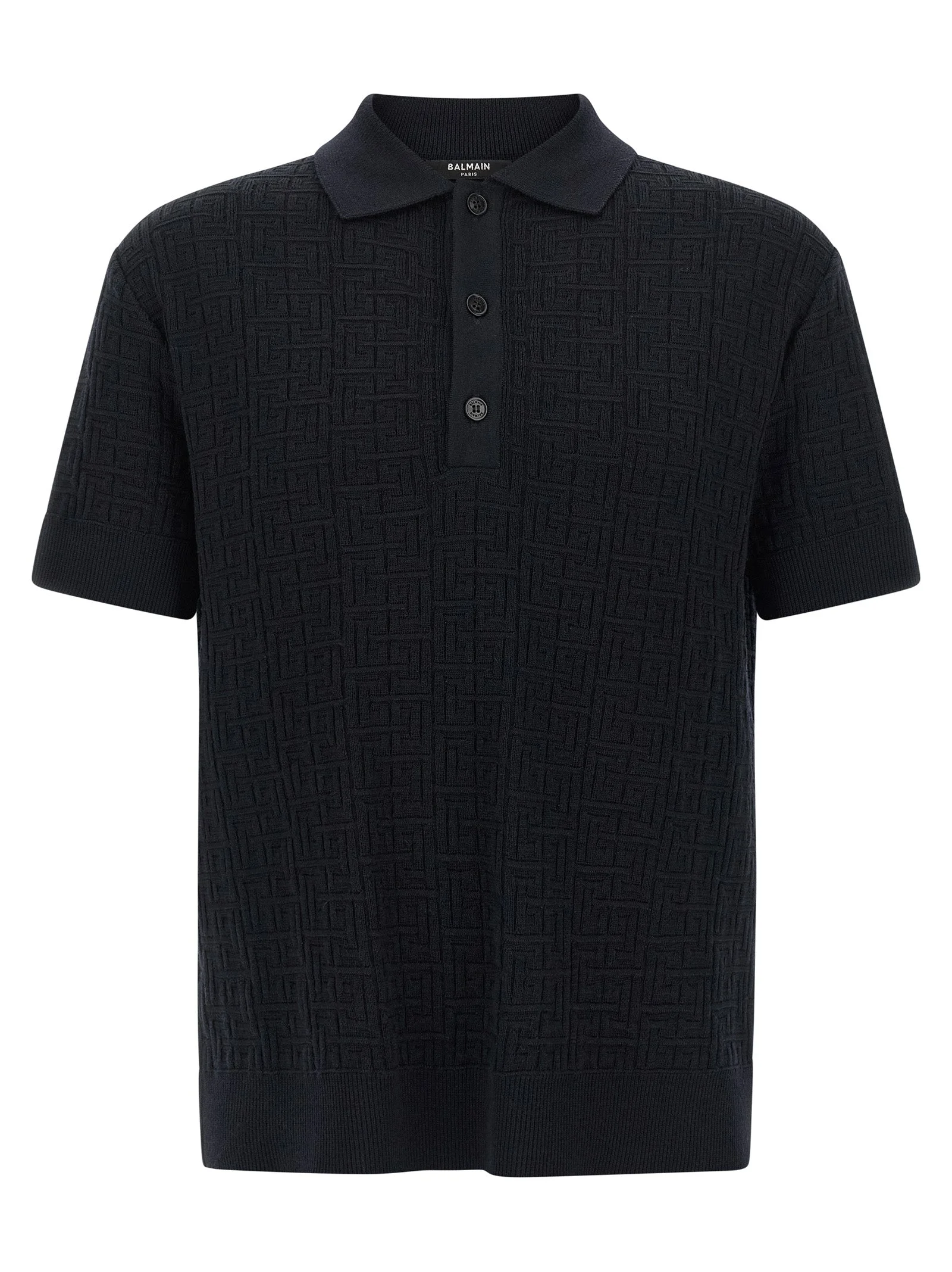 Polo shirt in wool blend knit, tonal 'Monogram' work, collar, 3 buttons front closure, short sleeves. - Colour: Blue - Composition: 66% wo, 30% li, 4% pa - Country Of Manufacture: France - Dimension: True to size fit - MPN: GH1GB044KI036AJ