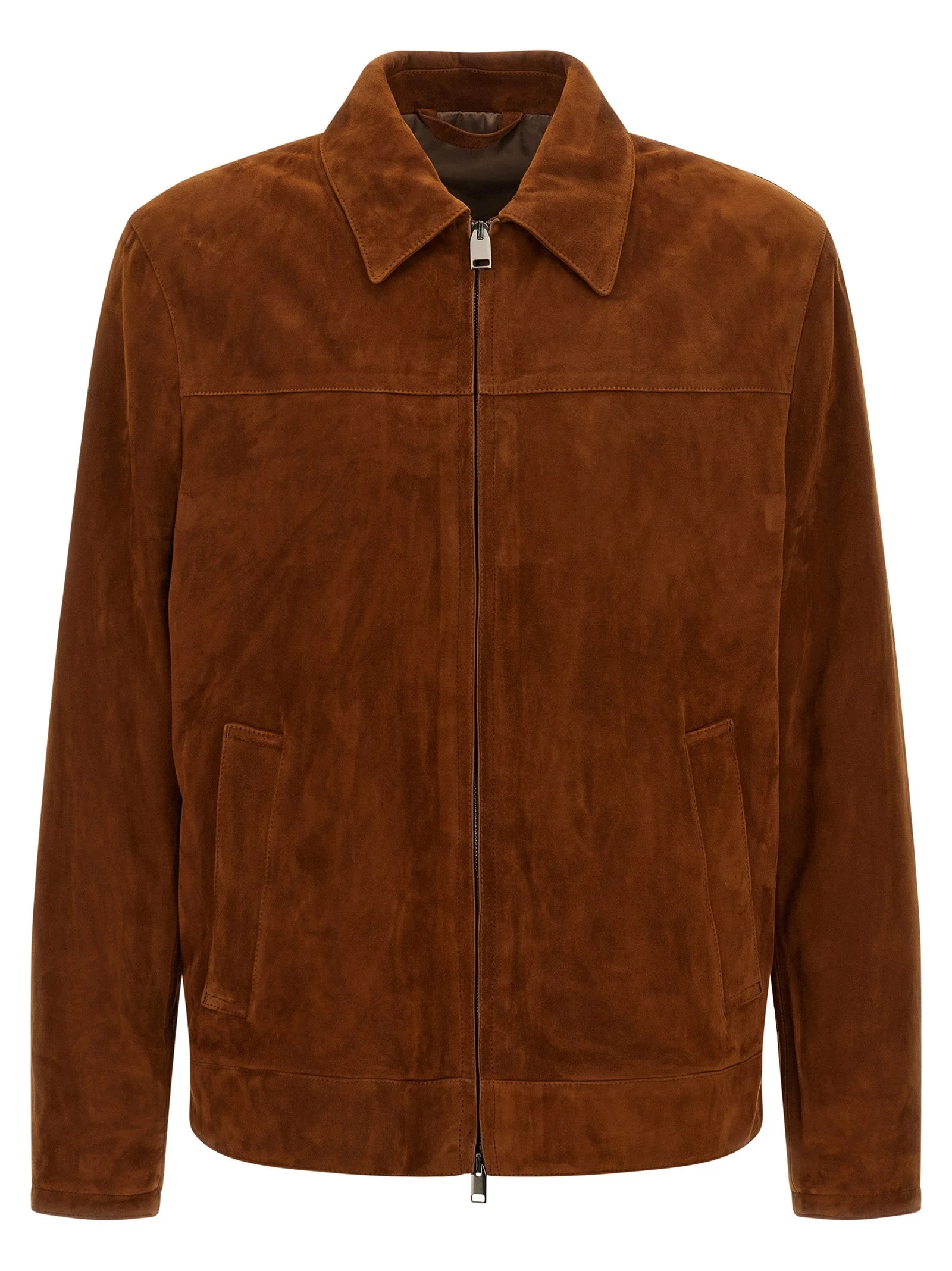 Suede blouson, cupro twill lining, shirt collar with embossed logo in the underneck, front zip closure, pockets, long sleeves. - Colour: Brown - Composition: 100% leather - Country Of Manufacture: Italy - Dimension: true to size fit - MPN: PLBV0LPB7132600