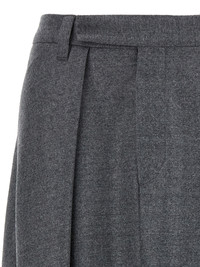 Virgin wool midi skirt with flared silhouette, pin tucks, zip hook and front button closure, unlined, asymmetrical hem, side split. - Colour: Gray - Composition: 100% virgin wool - Country Of Manufacture: Italy - Dimension: true to size fit - MPN: ME226G3914C003