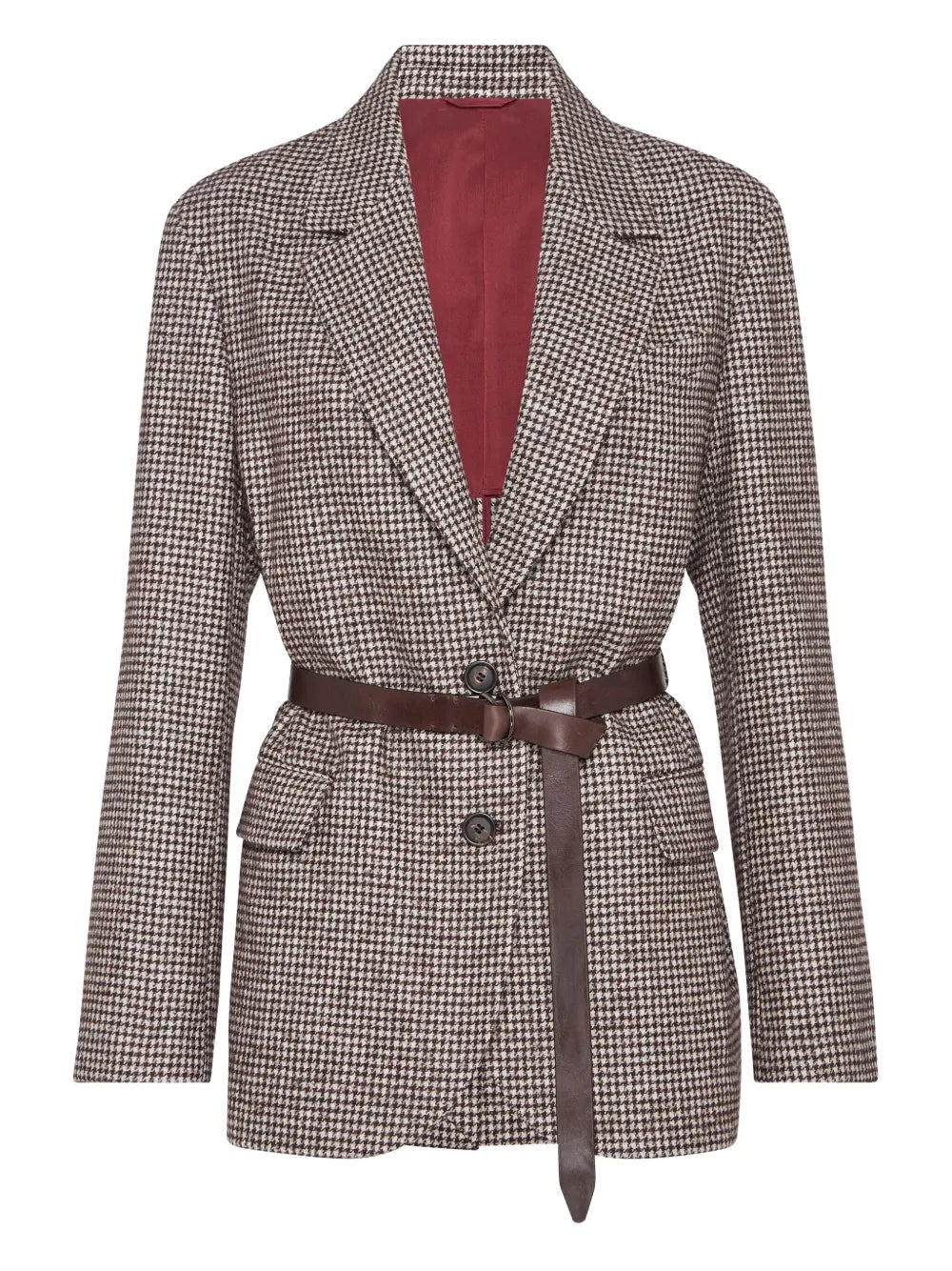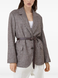 Wool and alpaca houndstooth blazer with leather belt and monili