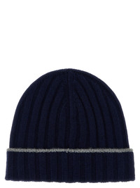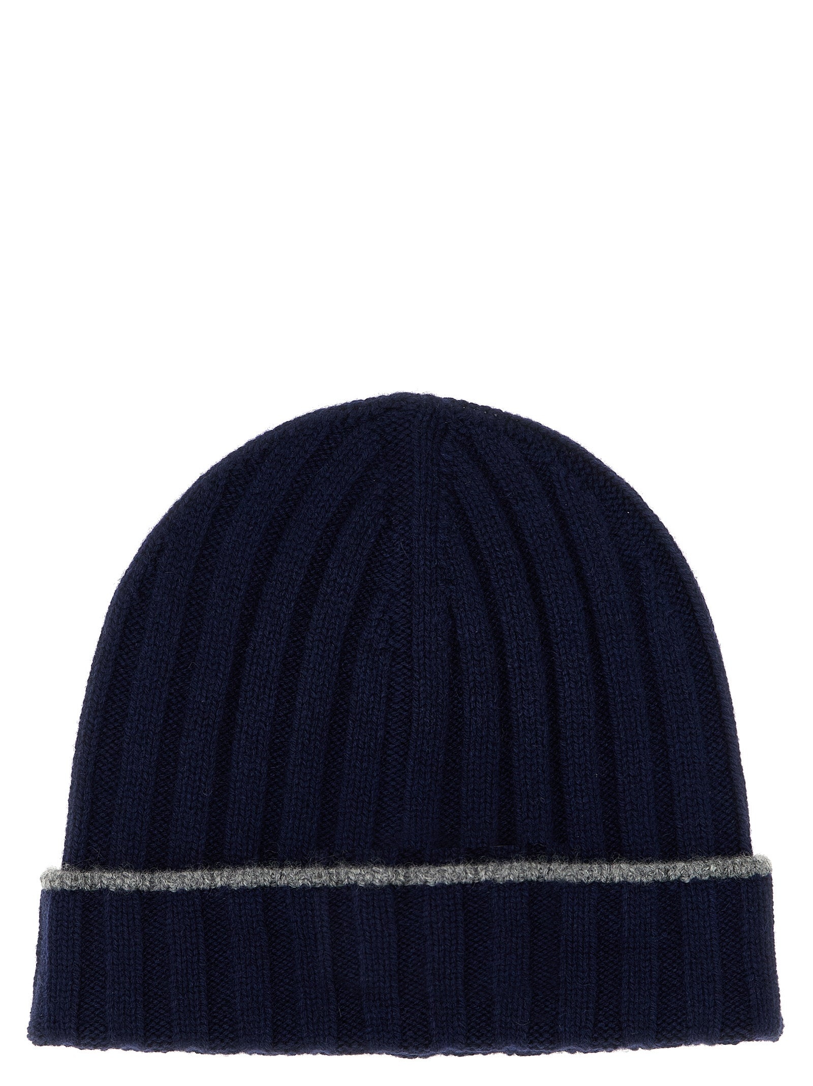 Ribbed cashmere beanie with contrast piping and turn-up. - Colour: Blue - Composition: 100% cashmere - Country Of Manufacture: Italy - Dimension: true to size fit - MPN: M2240900CA058